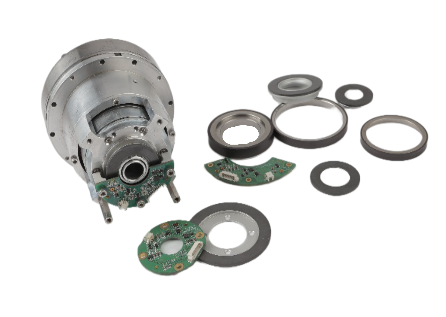 ¨ 中孔直徑高達(dá)45mm,允許穿過(guò)機(jī)械結(jié)構(gòu)、線(xiàn)纜、氣路等、超薄無(wú)軸承,體積小巧